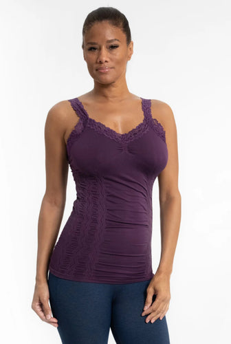 Our Lace Cami is created with delicacy in mind. Easy to wear under your low cut garments for a peak of detail, layer under your favorite blazer for the office, or simply by itself. The ruching fabric down the sides creates a slimming silhouette while adding beautiful texture.