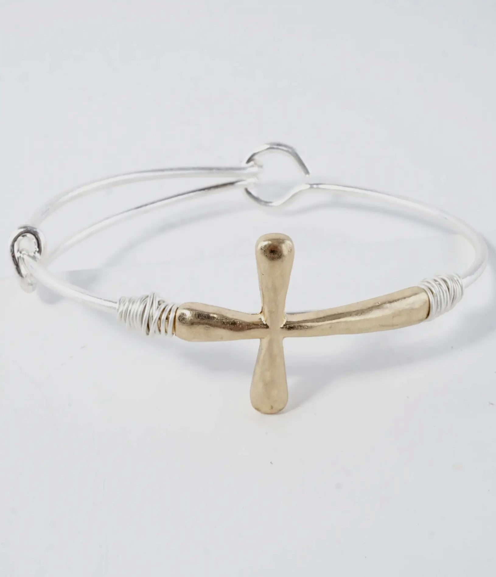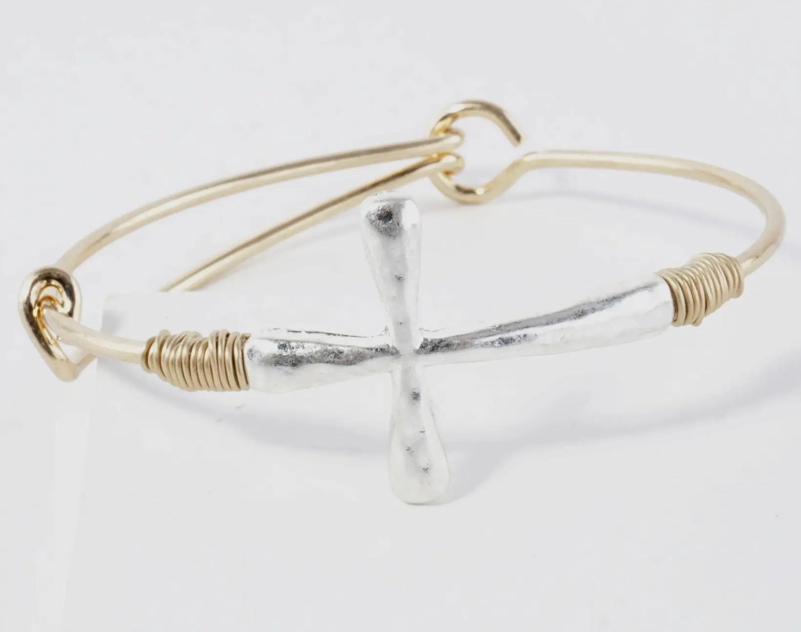 Hammered wired cross bracelet