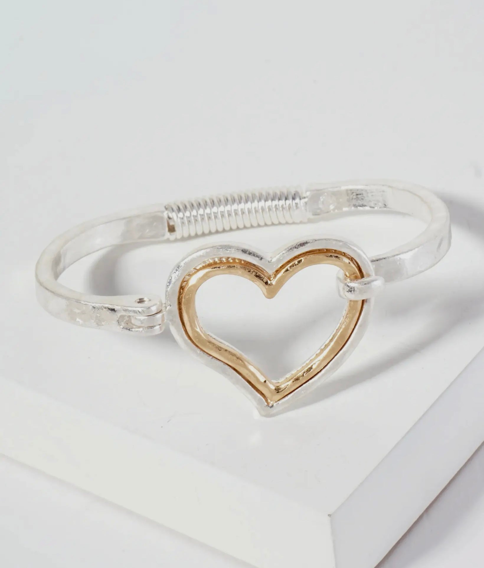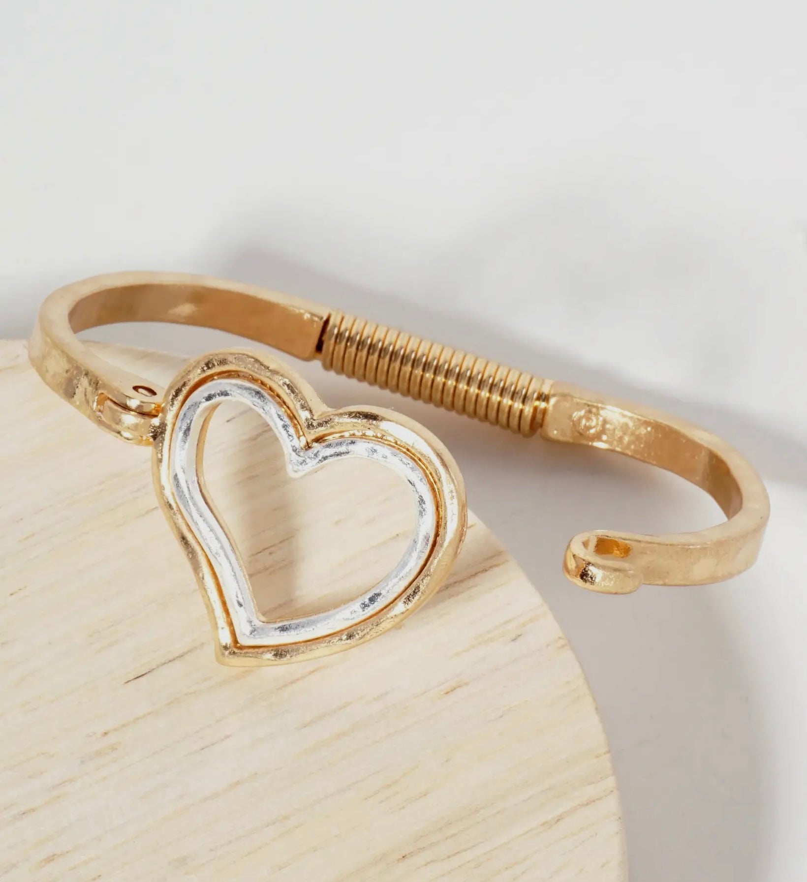 Two tone Hammered cuff heart bracelet