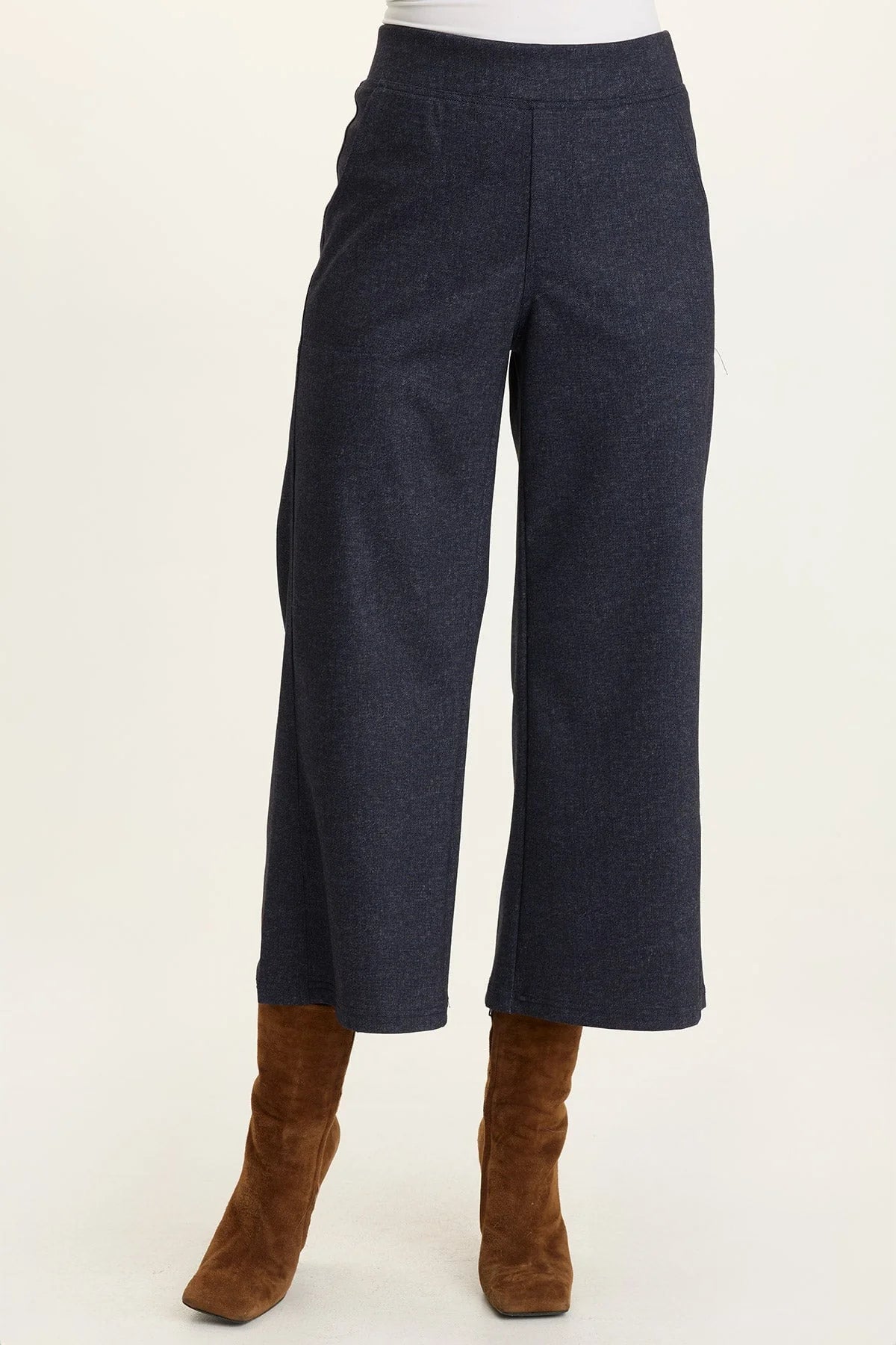 Indigo Ponte brings a sturdy, curve-grazing fit to this wide-leg flared style. Dressed up or down, this pull-on style is always comfortable. Blue