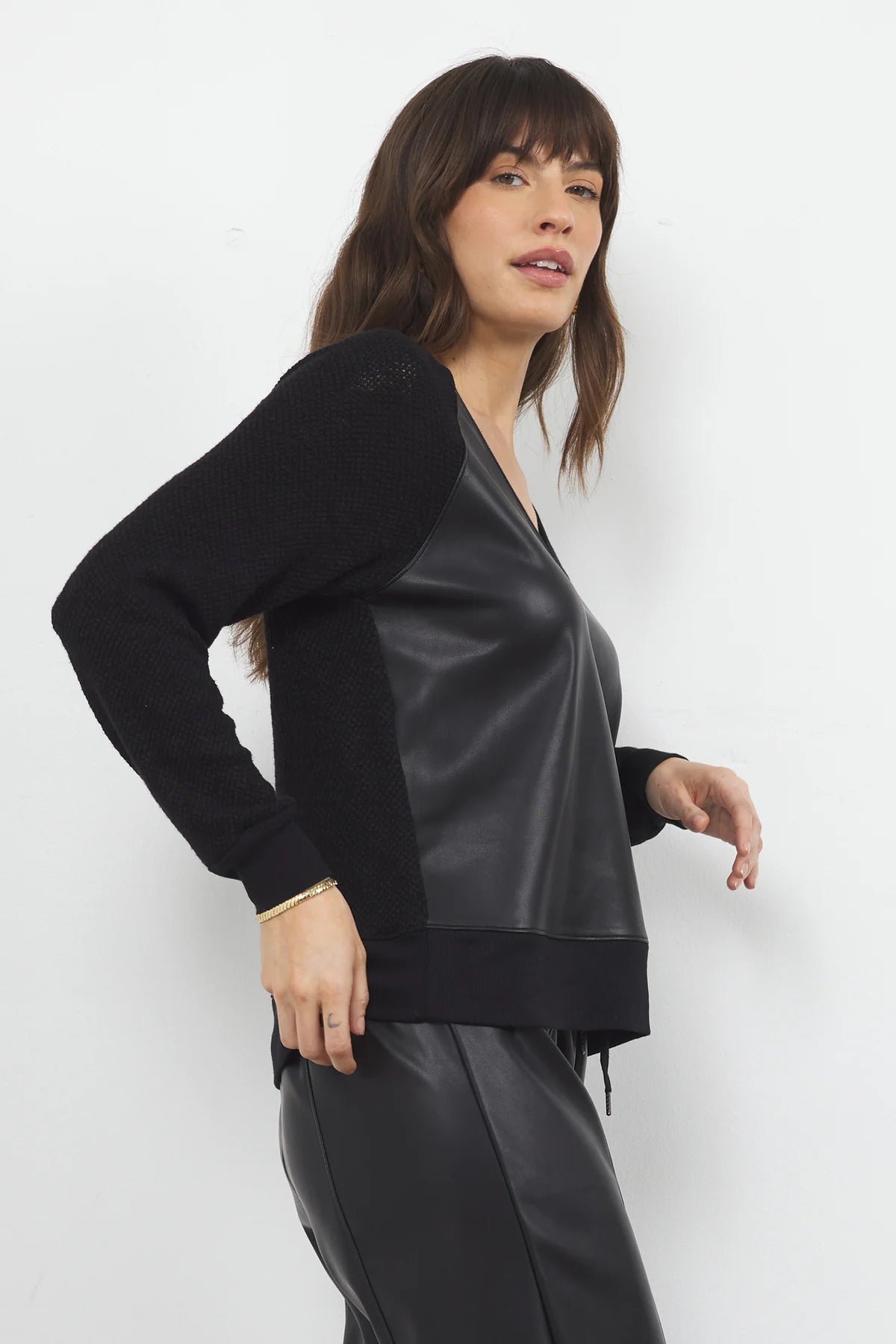 Elevate an every day pull over with the LAMade modern twist. Updated in a our Vegan Leather fabric with contrasting details, it’s a must-have for anyone craving the perfect daily layer. Black