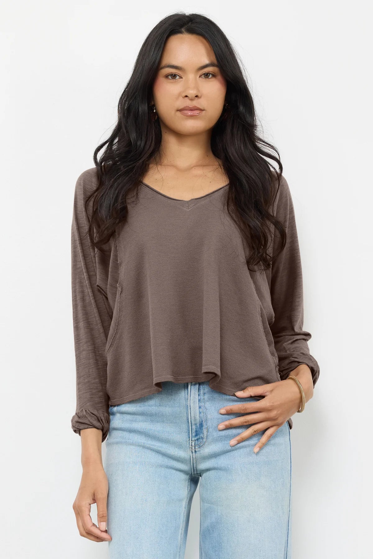 A loose fitting long sleeve v neck with a silky smooth feel you'll want to wear day to night.