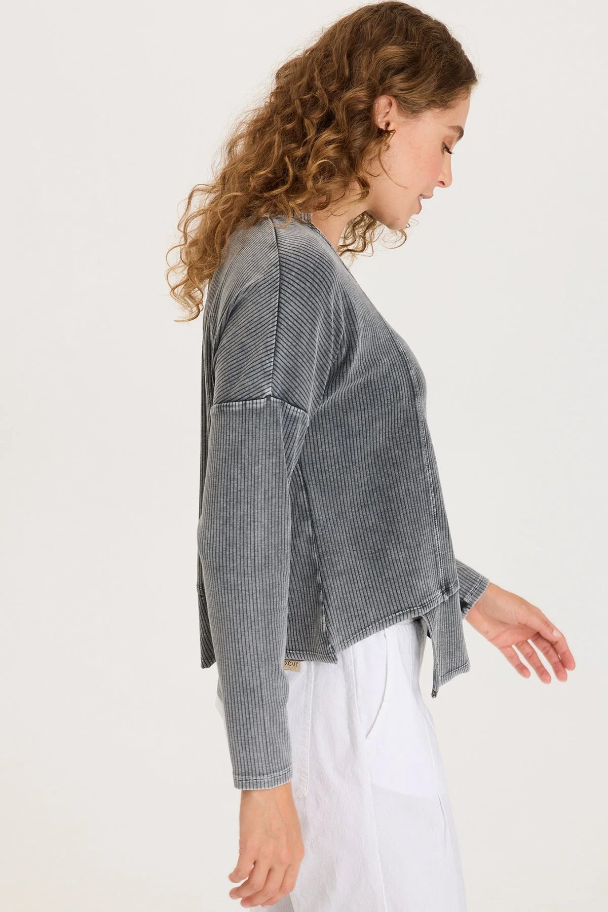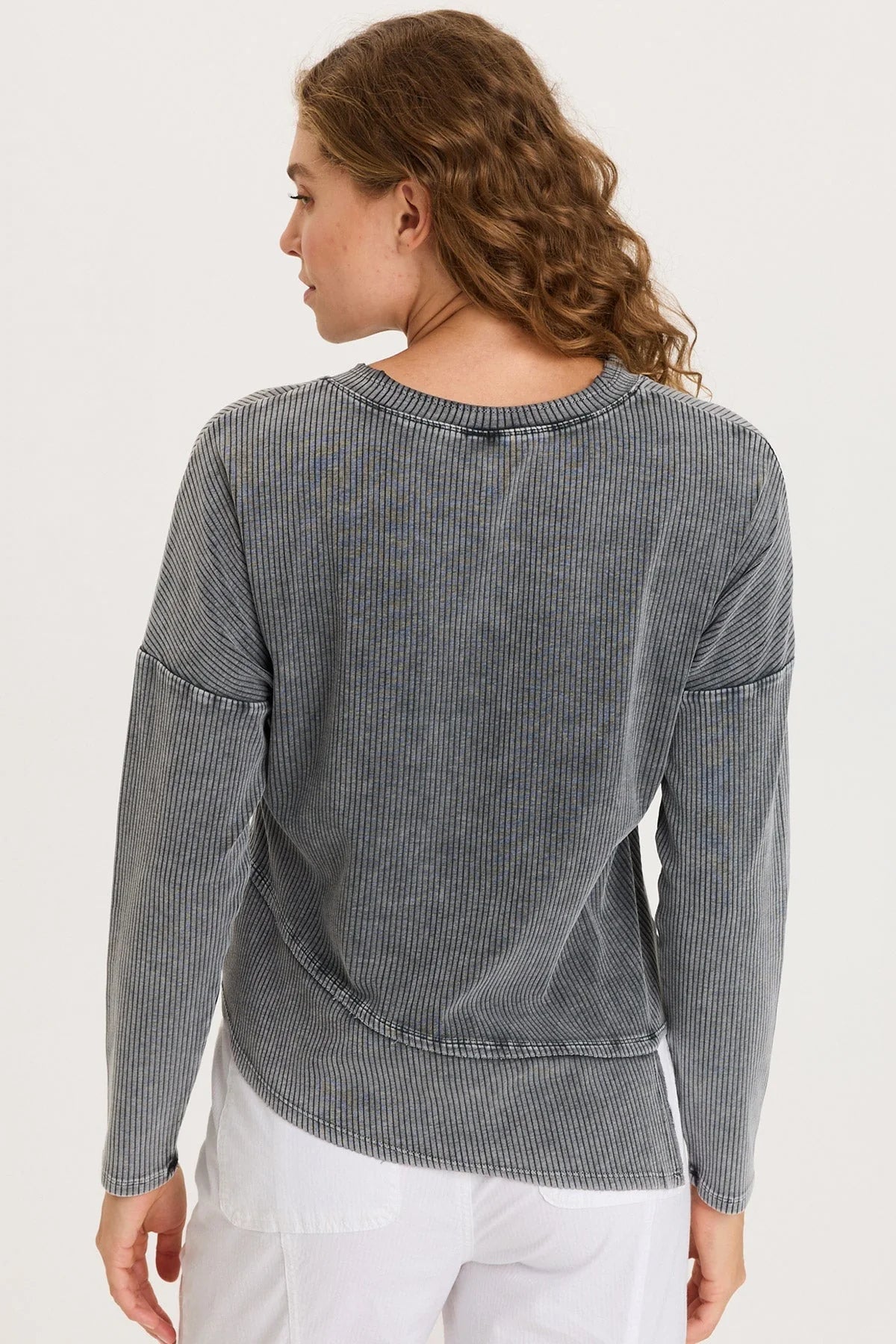 Asymmetrical seams and hems bring movement to the Hadden Long Sleeve. Featured in our newest wide rib, this top has surprises at every angle!